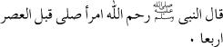 [26] Tirmidhi. 1/413. Ch. On the Four Before ‘Asr.